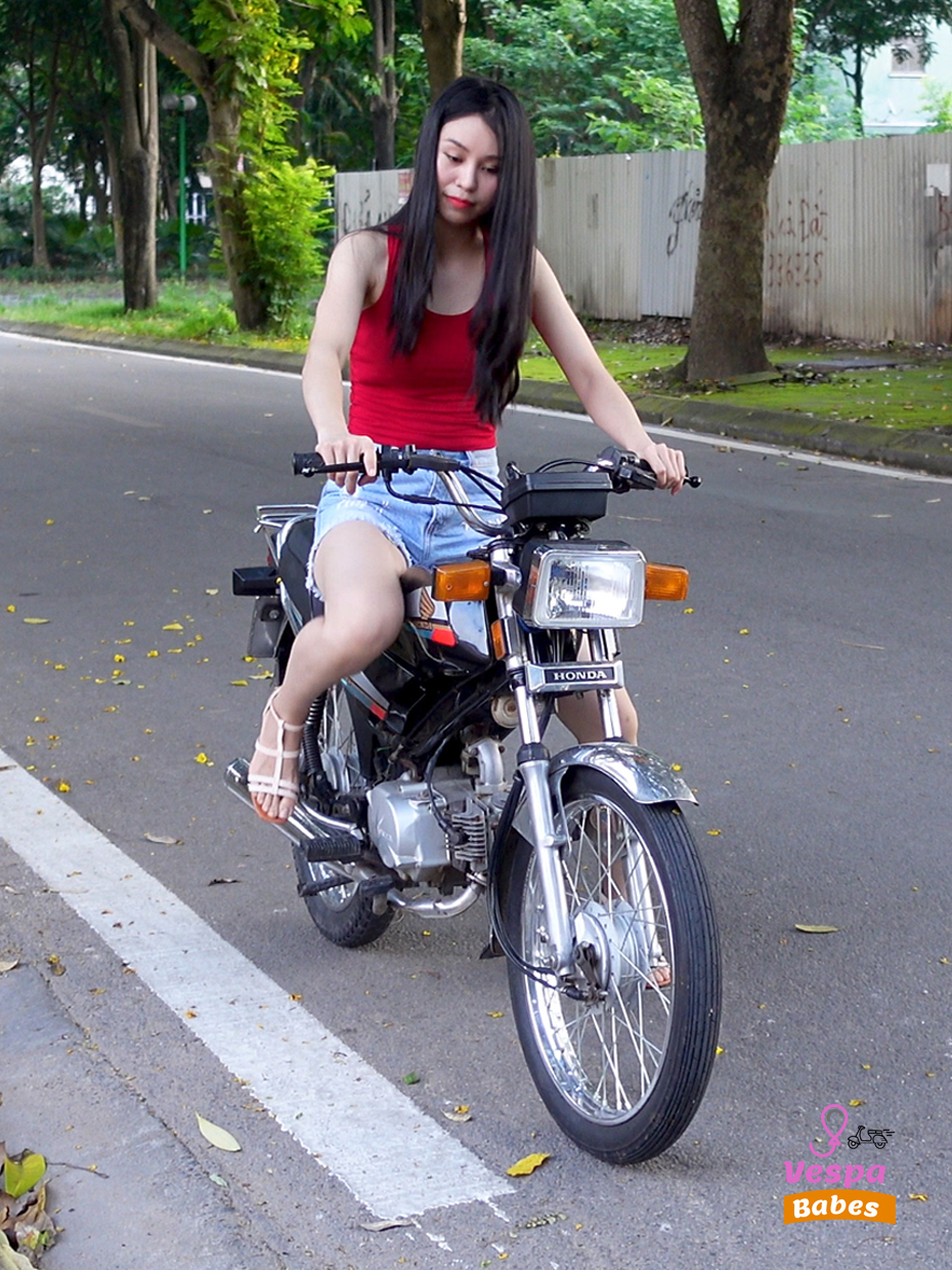 A nice Sunshine morning, that the first meet between Beautiful Lady with the Honda Win100. She is nervous to ride it