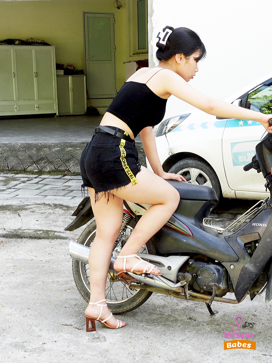 Leaving home with a broken motorcycle, she had the car repaired to go to the supermarket But it was hard to start, she kicked hard to get the motorcycle to start But it doesn’t listen to her, let’s see how she punishes it