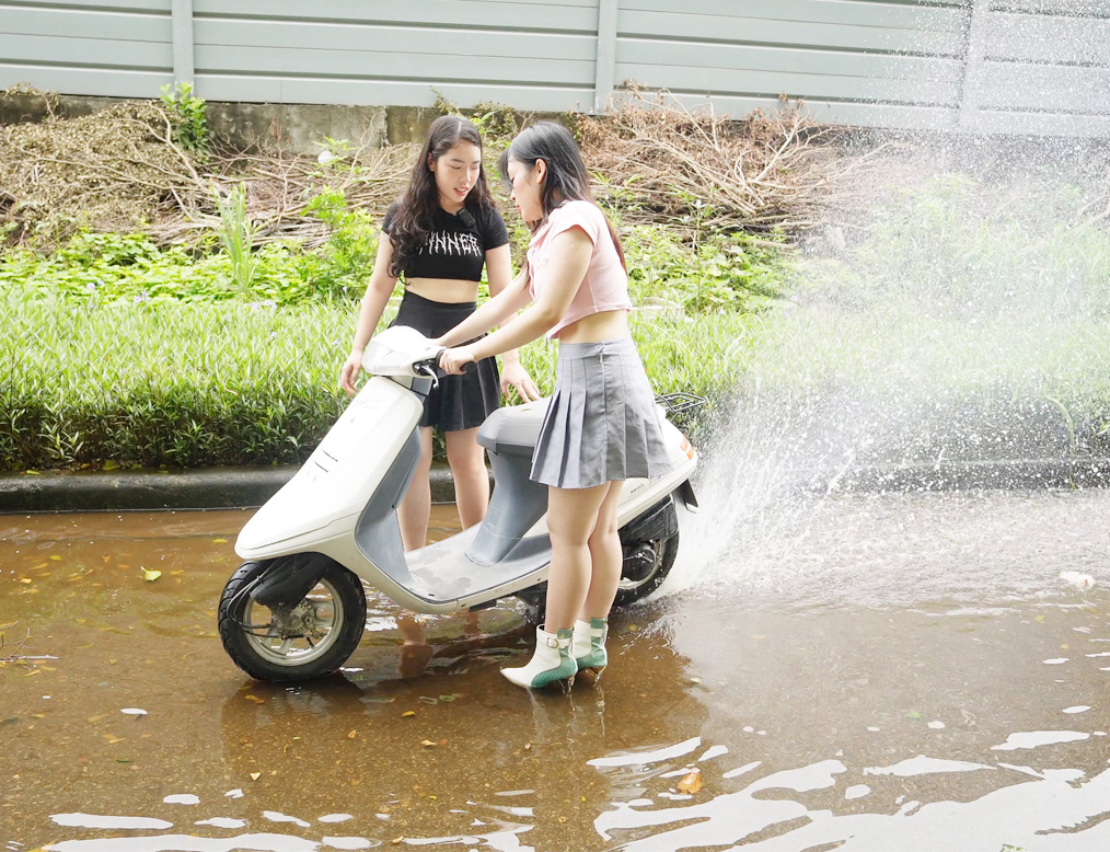 A daring ride through flooded streets – sleek leather, elegant high heels, and the irresistible allure of a fearless woman on two wheels. Watch every sensual step as the heels meet the water, creating a thrilling mix of style, danger, and passion. Perfect for those who love feminine power, high heel glamour, and motorcycles.