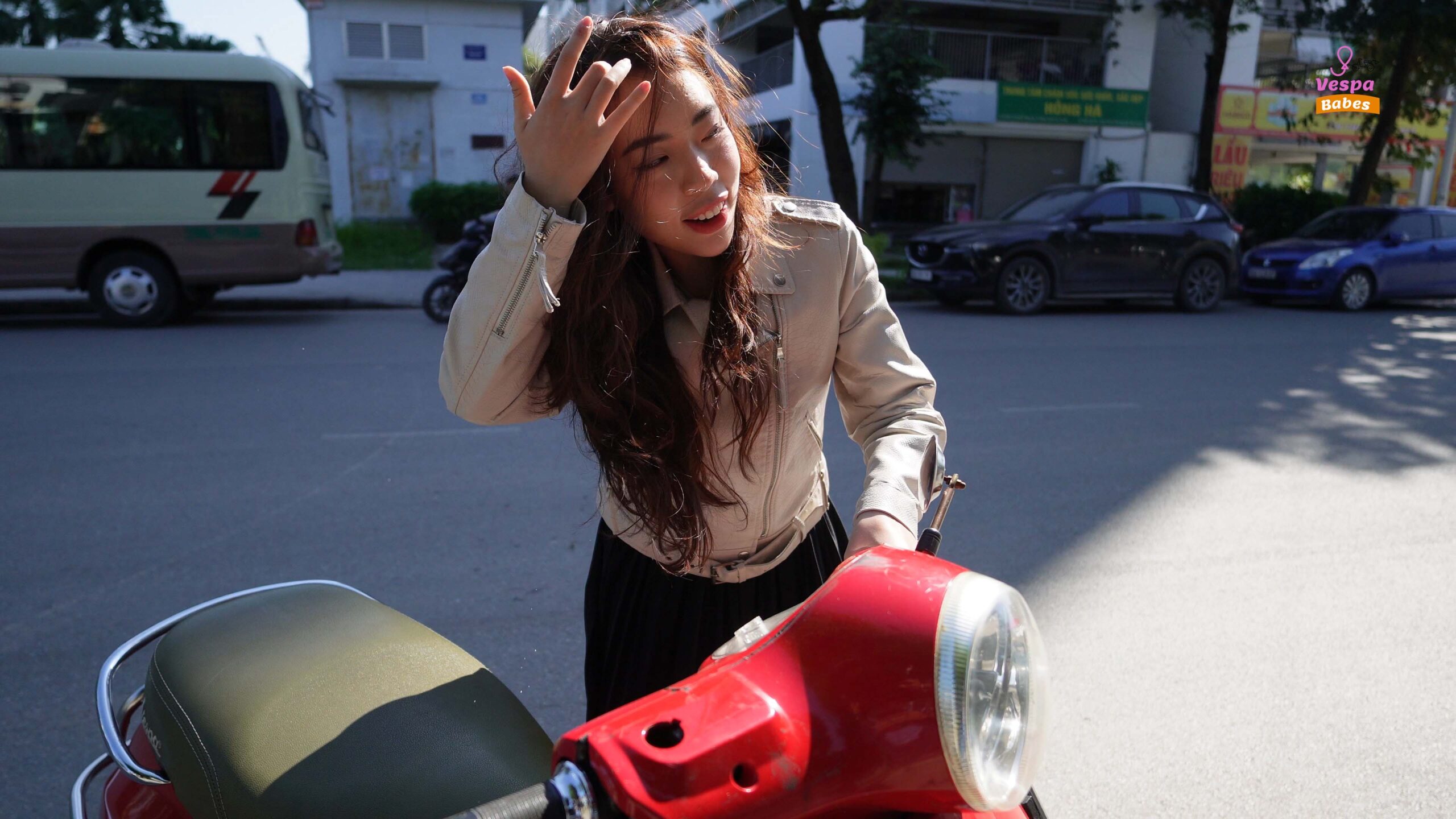 In the first episode of Ride With Her, her red Vespa suddenly refuses to start. She tries kick-starting it, using the electric starter again and again, but nothing works. Her confused, frustrated, yet adorable reactions make this moment unforgettable and surprisingly funny.
