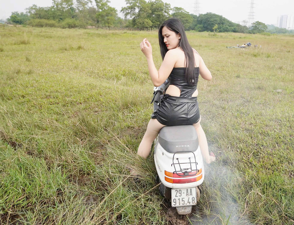 Beautiful Girl Got Stuck With a Vintage Scooter