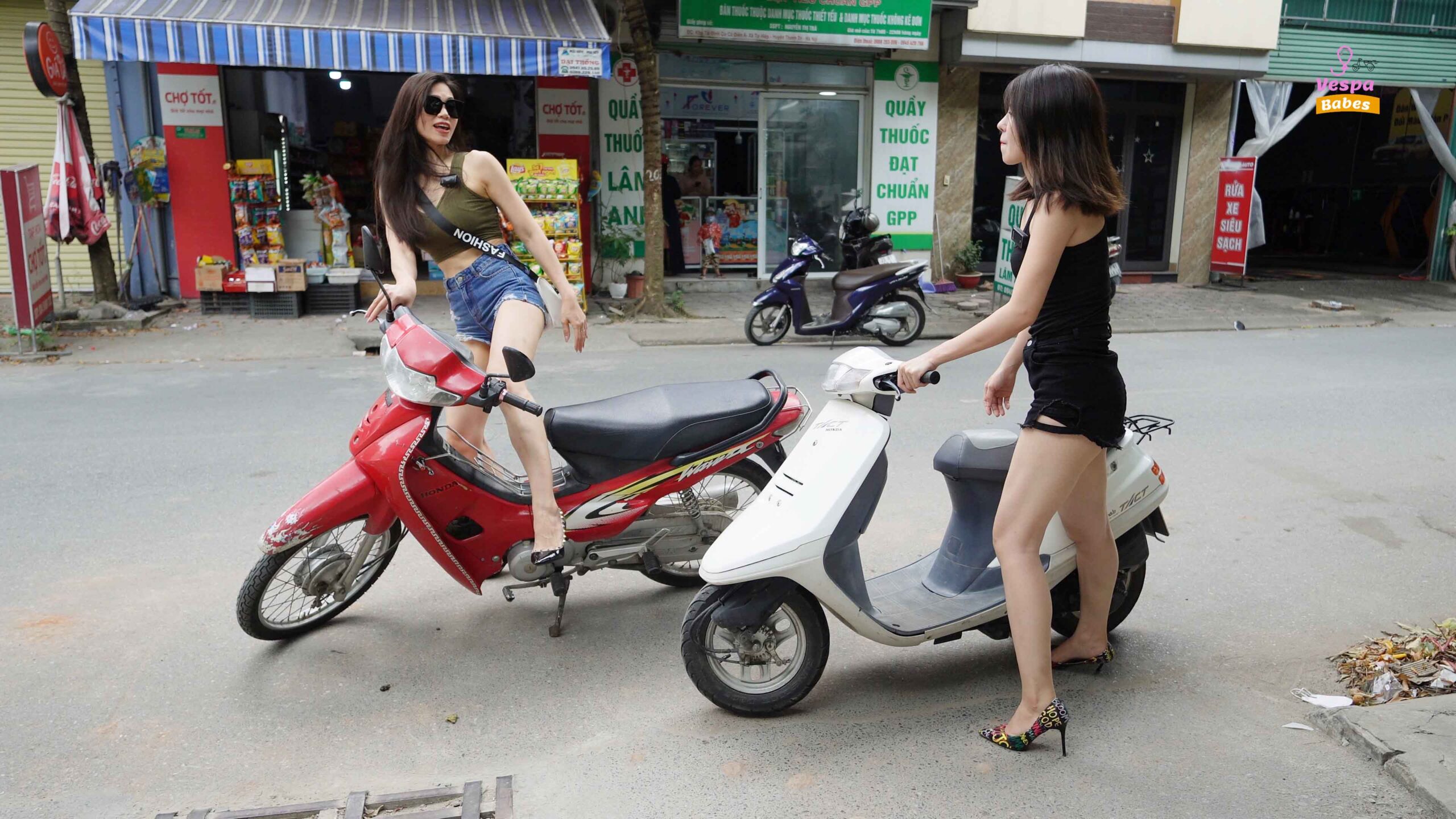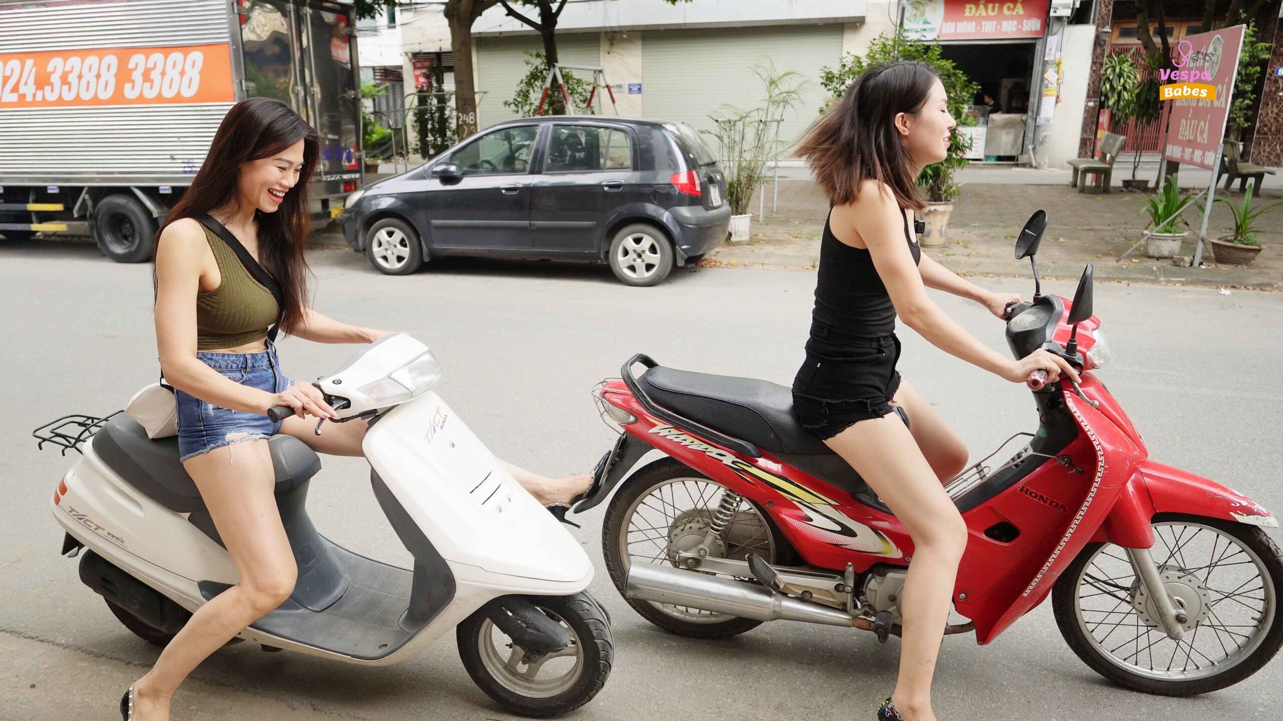 Two Girls, Two Old Motorbikes – A Fun Day on the Street!